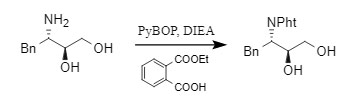 Aguilarらは、塩基(DIEAなど)と縮合試薬PyBOPの存在下でモノエチルフタレートを用いてアミド反応を促進し、Pht保護基を導入した。